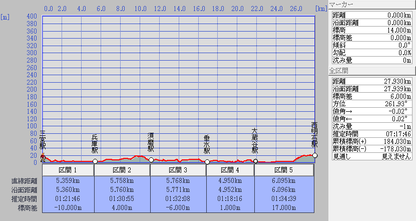 | 所要時間(4km/h) | 07:20:00(往路) |