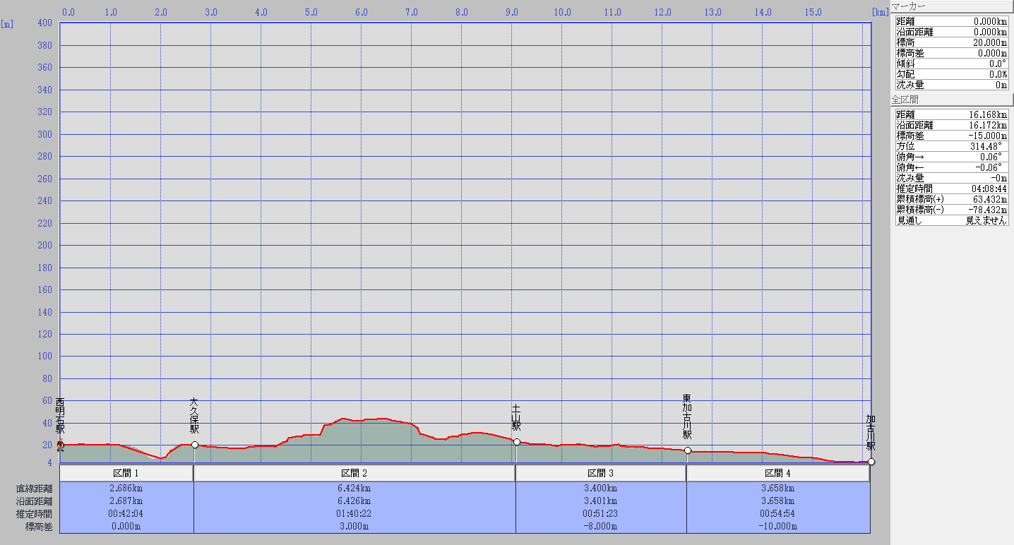 | 所要時間(4km/h) | 04:10:00(往路) |